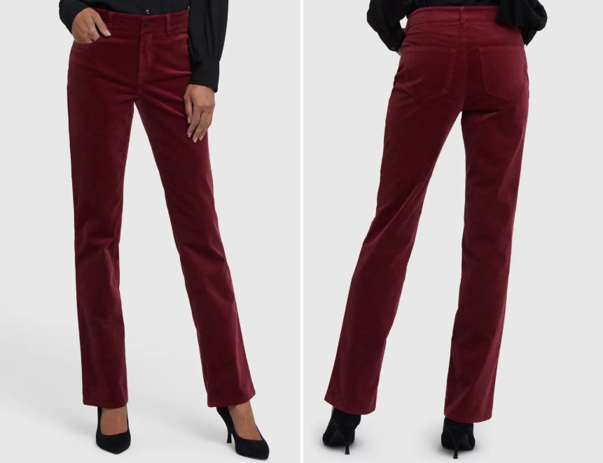 You can choose a straight leg pair for a classic look or try a wide leg cut if you want something more modern. Colors like rust, burgundy, chocolate brown, olive, and cream all work well with neutral sweaters you already own.